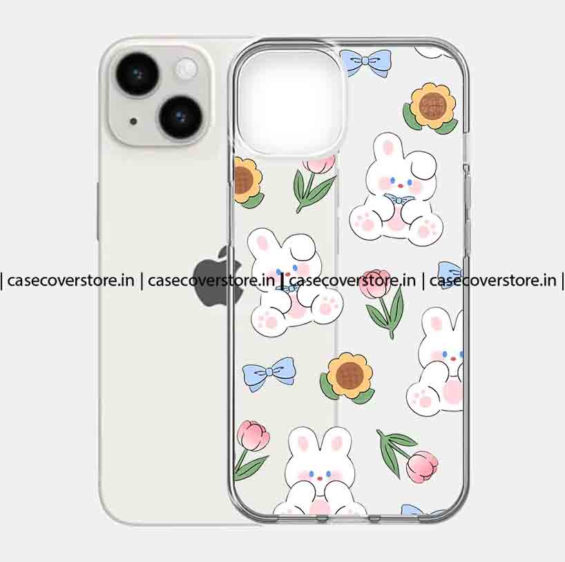 Cute Flower & Bunny Clear Silicone Phone Case